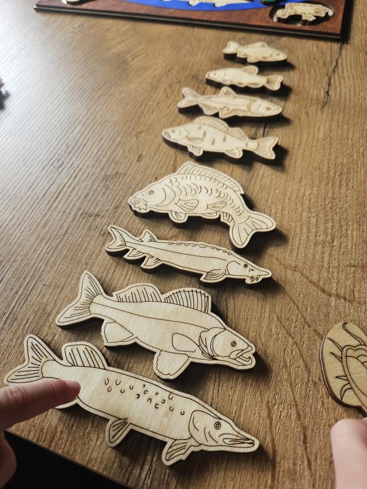 Poznaj fascynujący świat polskich jezior z naszą wyjątkową, drewnianą układanką edukacyjną! To nie tylko zabawka, ale prawdziwe centrum nauki o rybach, które zachwyci zarówno dzieci, jak i dorosłych. W zestawie znajdziesz:
