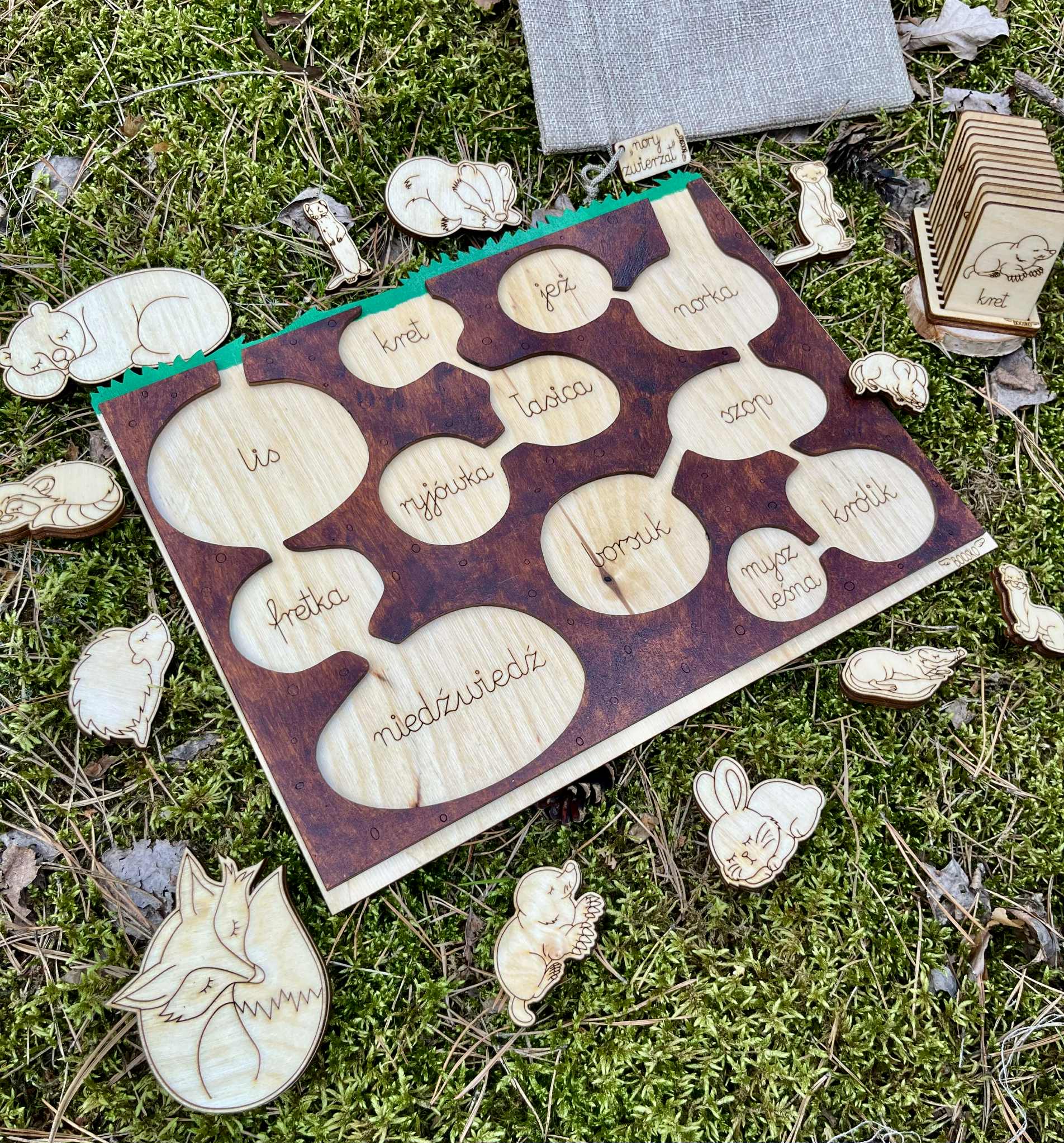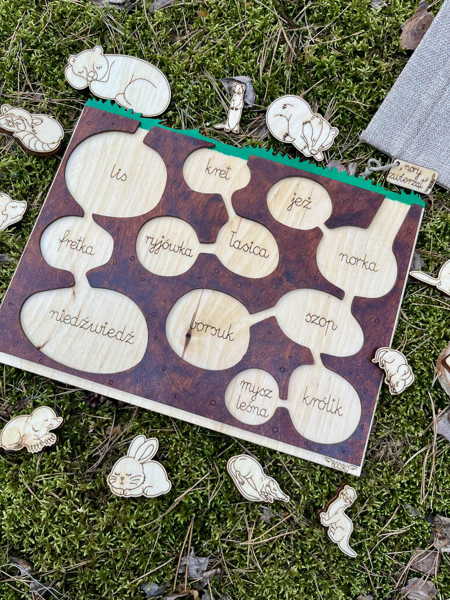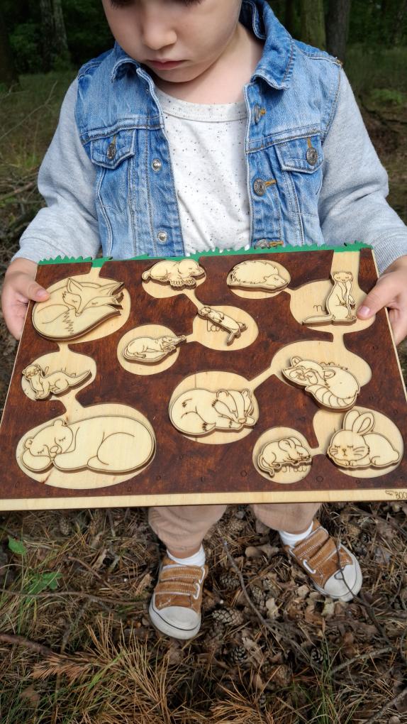 Poznaj fascynujący świat zwierząt, które mieszkają pod ziemią! Zwierzaki które kopią nory, ale również takie które już korzystają ze znalezionych norek innych zwierząt, Ten wyjątkowy, ręcznie wykonany drewniany zestaw edukacyjny łączy układankę, sensorykę i naukę przez doświadczanie. To idealny wybór dla dzieci ciekawych przyrody i świata leśnych zwierząt.