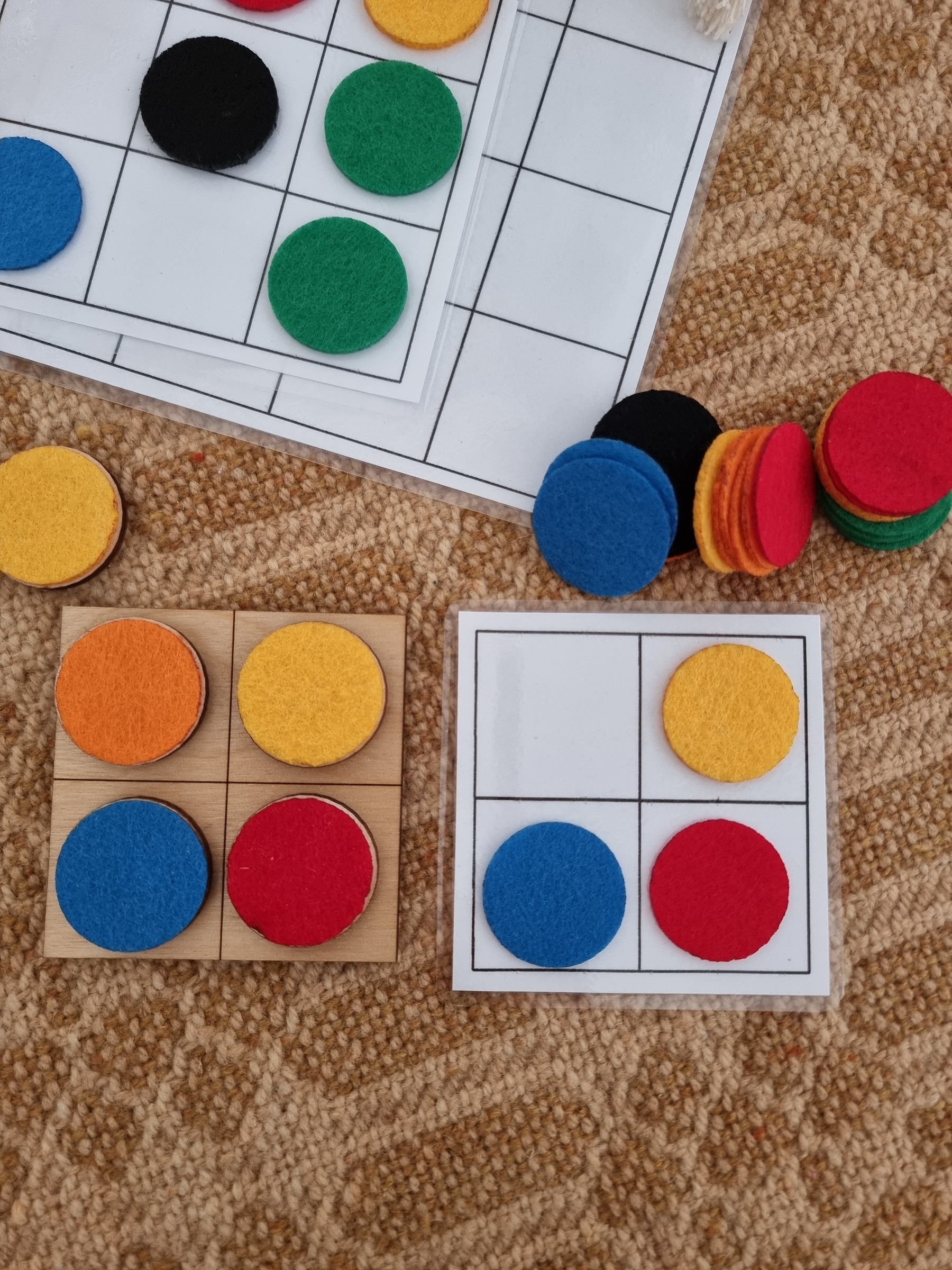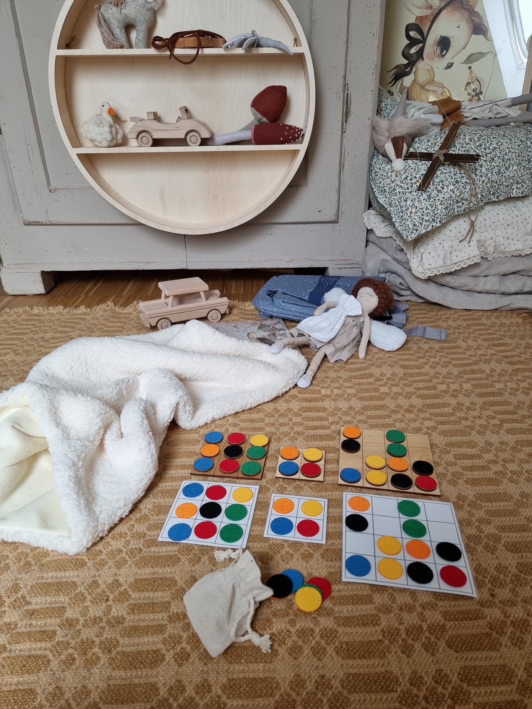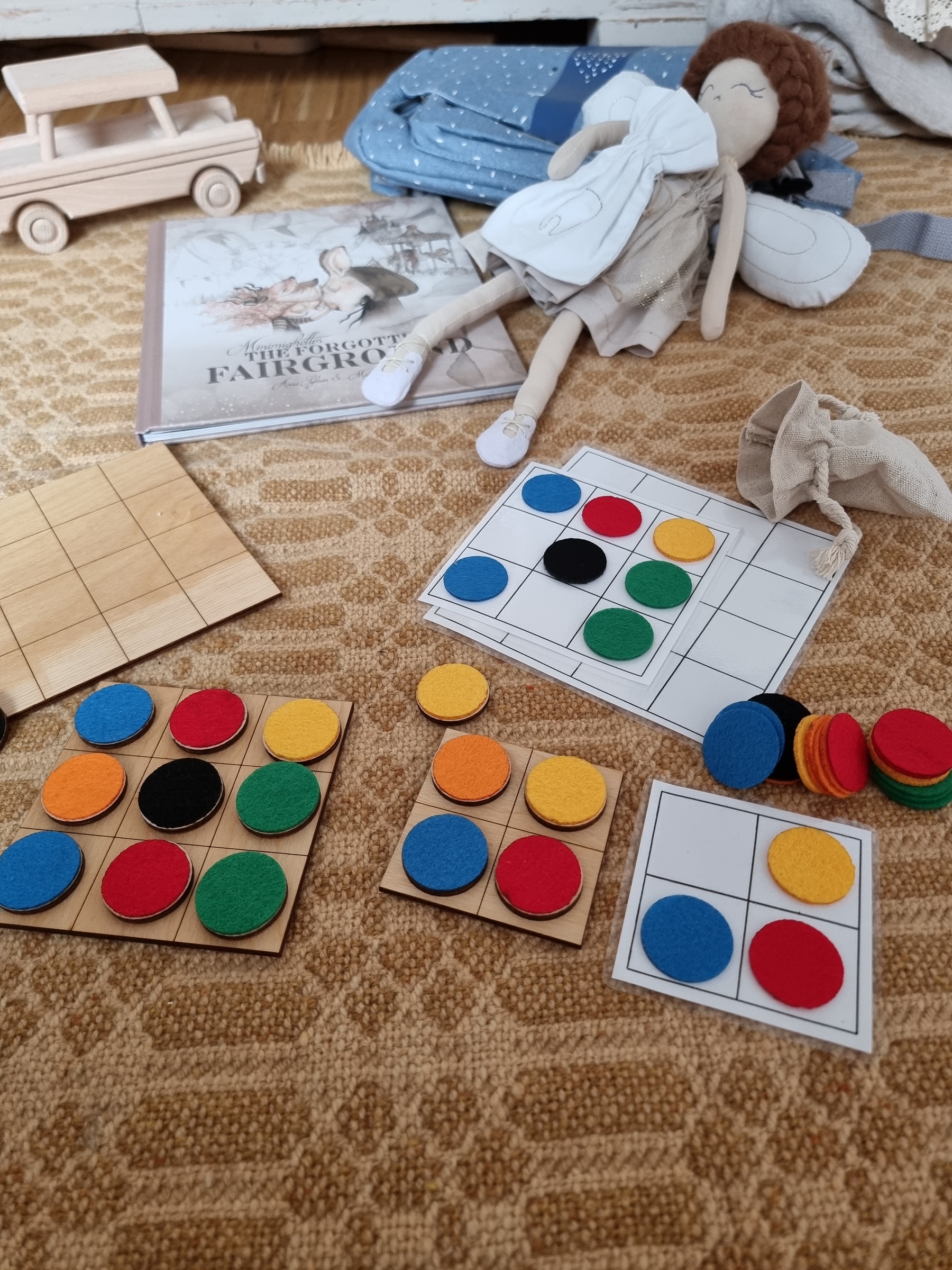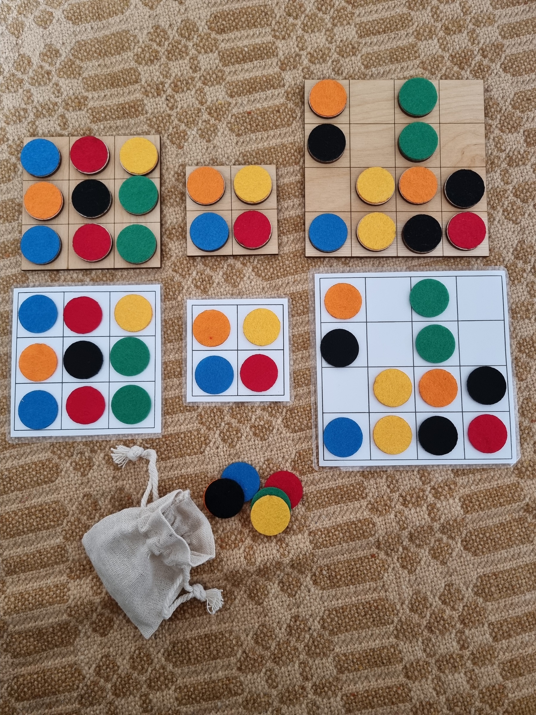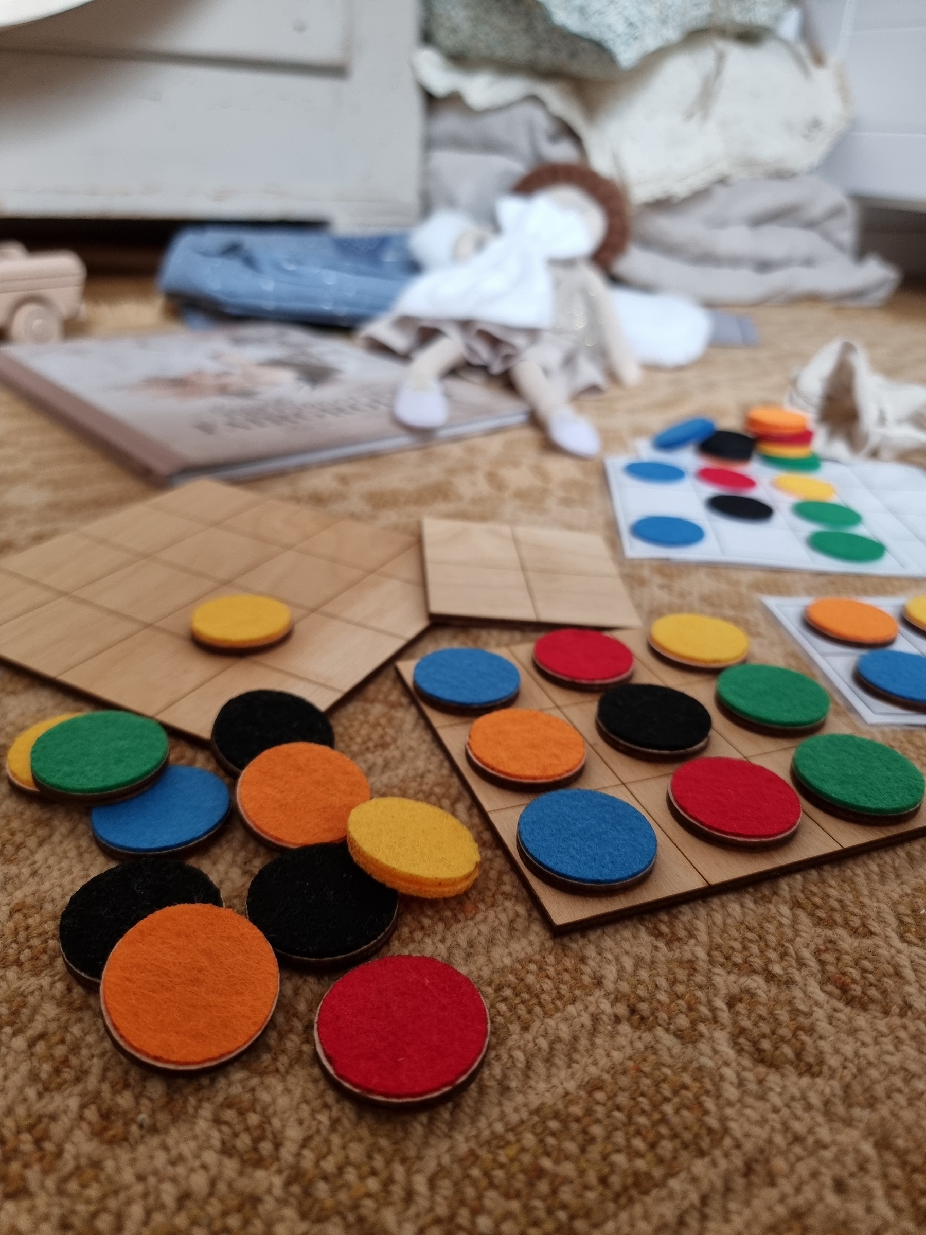 - 30 drewnianych żetonów z kolorowym filcem