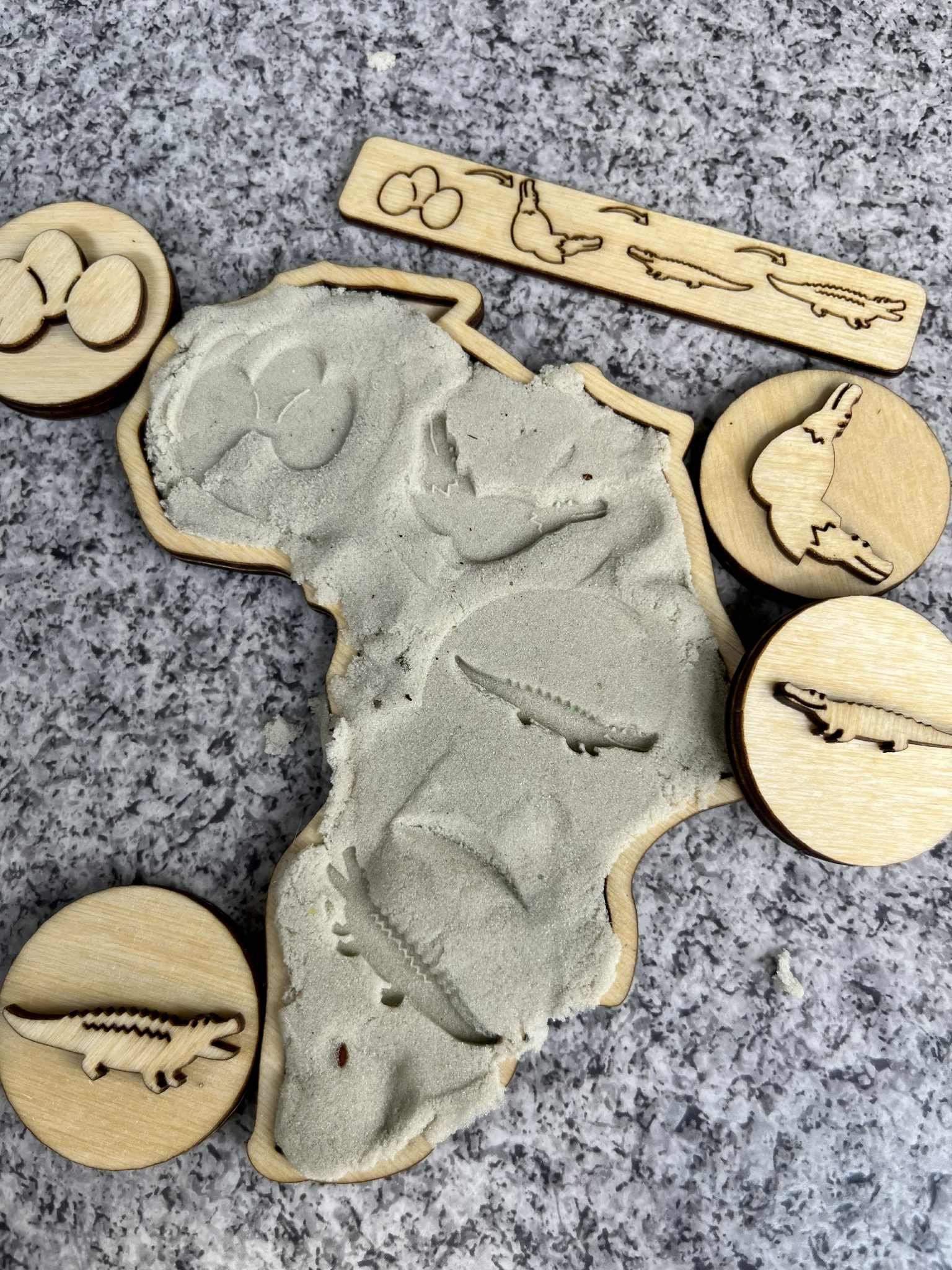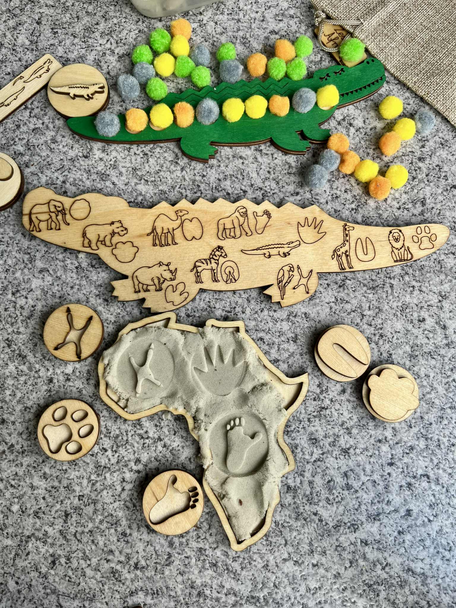 Strona główna » Drewniane Pomoce Dydaktyczne » Zestaw " Afryka" - ( układanka lewopólkulowa, cykl rozwojowy, drewniane stemple z tropami zwierząt mieszkających w Afryce))