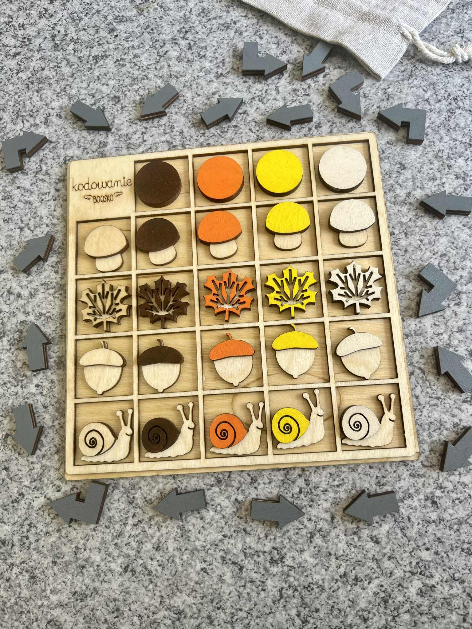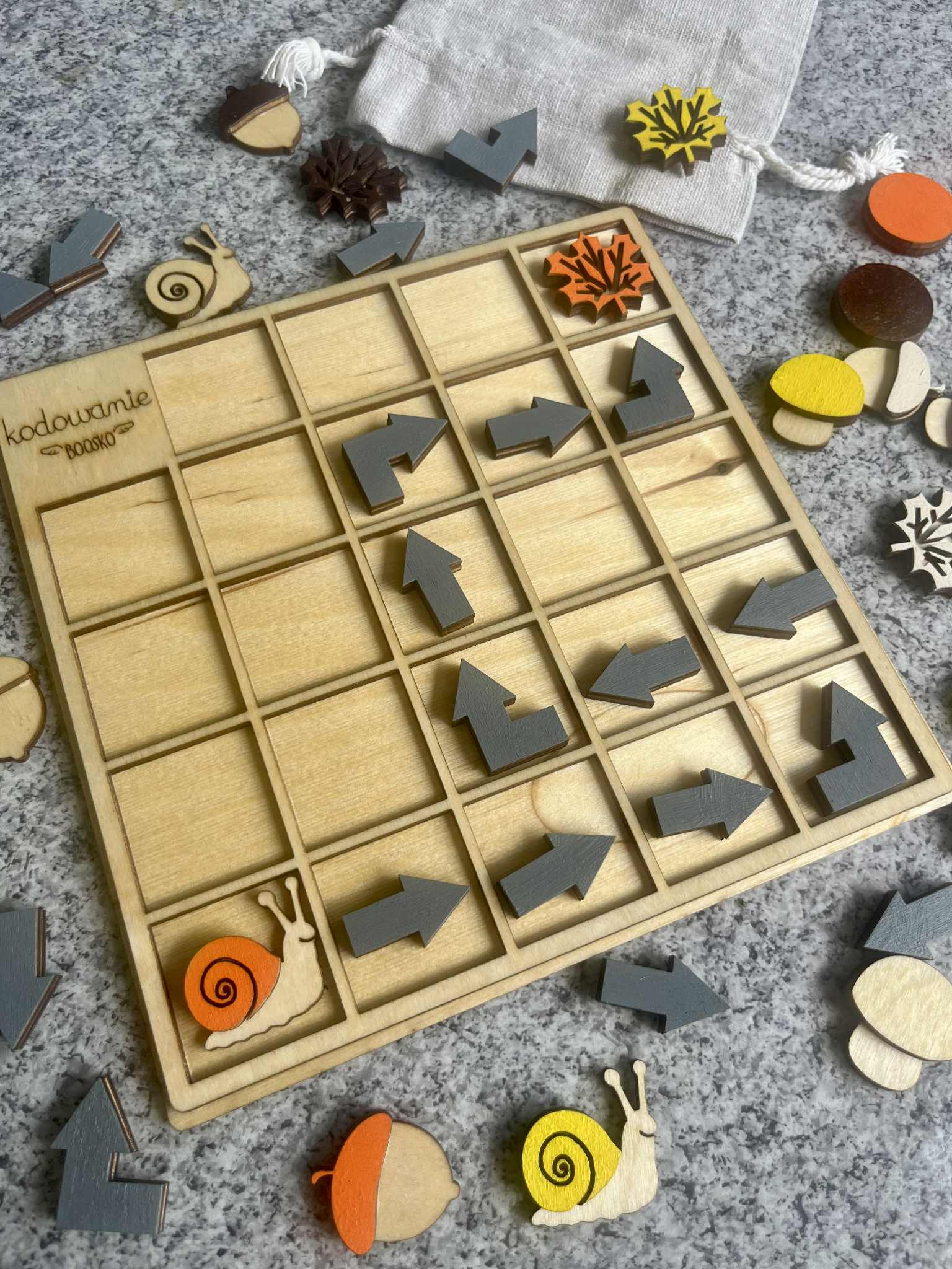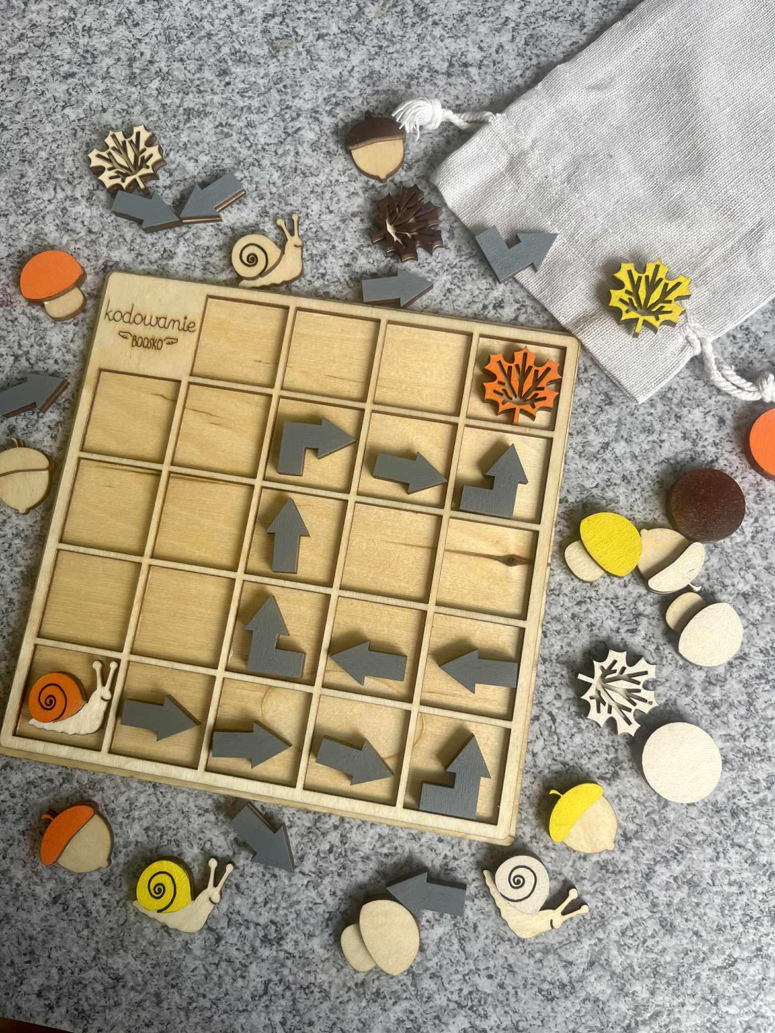 Poznaj wyjątkowy drewniany zestaw do kodowania dla dzieci, który łączy naukę logicznego myślenia z kreatywną zabawą w leśnym klimacie! Dzięki uroczym elementom takim jak grzybki, ślimaki, żołędzie i listki, dzieci uczą się podstaw kodowania poprzez układanie sekwencji i rozwiązywanie leśnych zadań. Co oferuje ten zestaw?