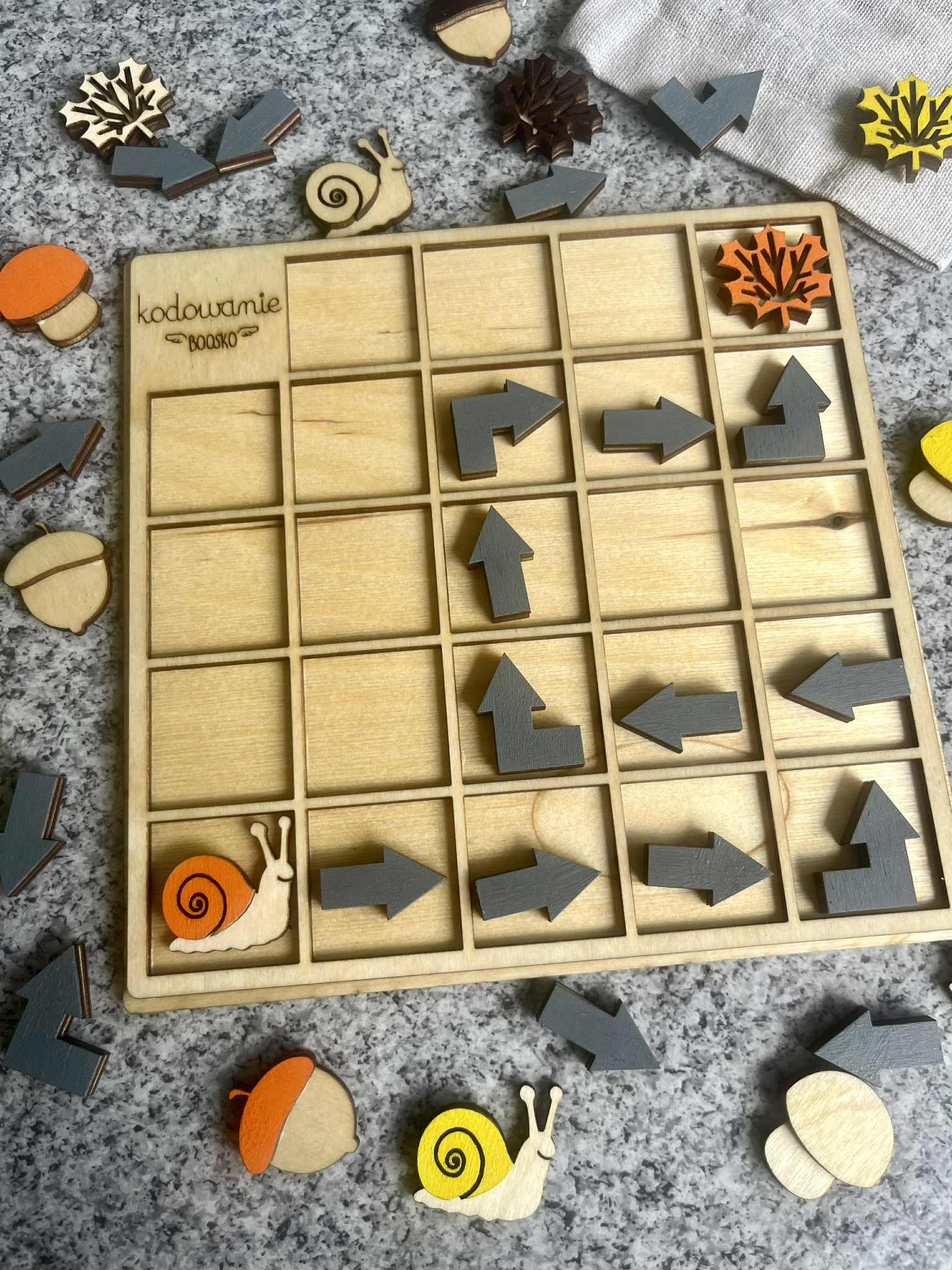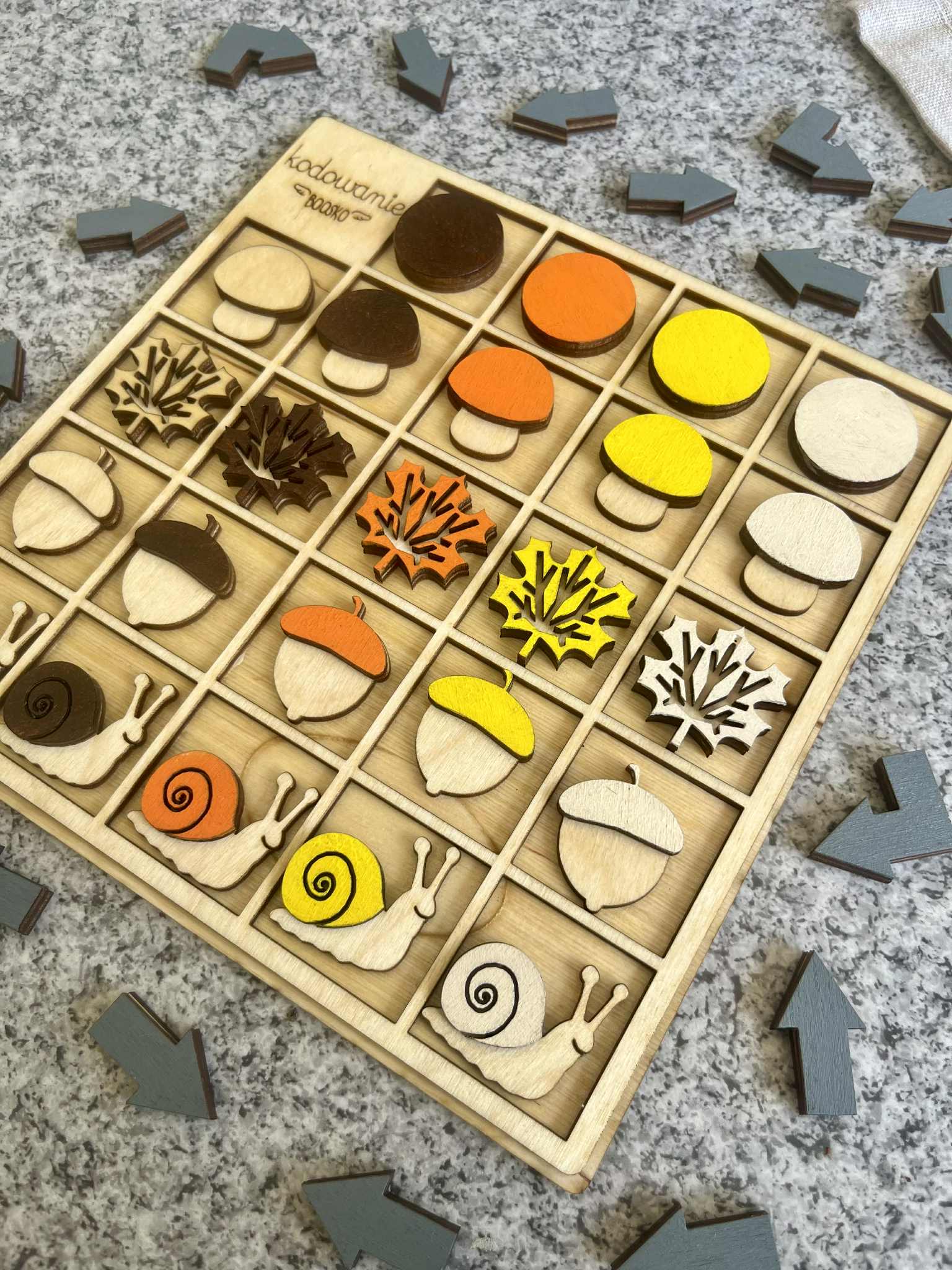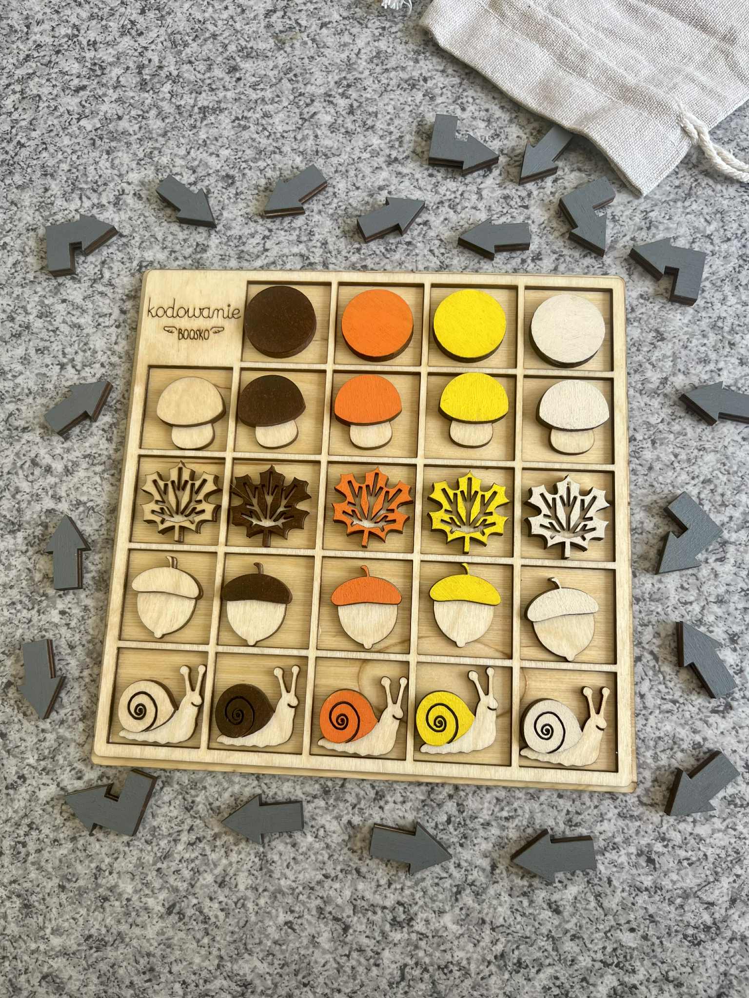 Poznaj wyjątkowy drewniany zestaw do kodowania dla dzieci, który łączy naukę logicznego myślenia z kreatywną zabawą w leśnym klimacie! Dzięki uroczym elementom takim jak grzybki, ślimaki, żołędzie i listki, dzieci uczą się podstaw kodowania poprzez układanie sekwencji i rozwiązywanie leśnych zadań. Co oferuje ten zestaw?