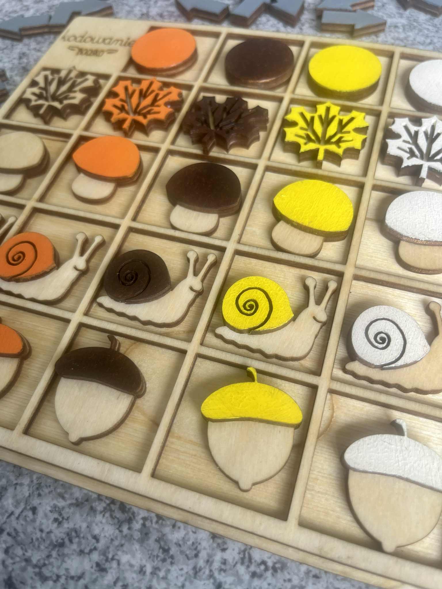 • Drewnianą dwustronną planszę do układania trasy oraz na łączeniu cech obrazków z poszczególnych rzędów i kolumn.